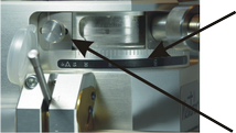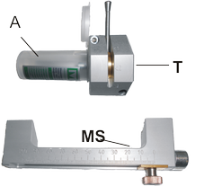 ![]() | Die Grundeinstellung der Tiefenlehre, mit der Kalibrierschraube (K) und der Anschlag (A) am Elektrodenhalter ermöglichen das wirtschaftliche Anschleifen der Elektrodenspitze (wie minimaler Elektrodenverbrauch, kurze Schleifzeit, wenig Schleifstaub und geringer Diamantscheibenverschleiß) |