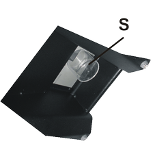 Im  Staubbehälter (S) unter dem Standfuß sammelt sich der